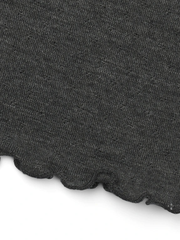 Merino ullartrefill sem er þríhyrningslaga í stærð 90x90x150 cm. Þessi 100% merino ullartrefill er yndislega mjúkur og er með fínni "eyelet" prjónaáferð. Merinoull er þekkt fyrir einstaka mýkt, hlýju og öndun.