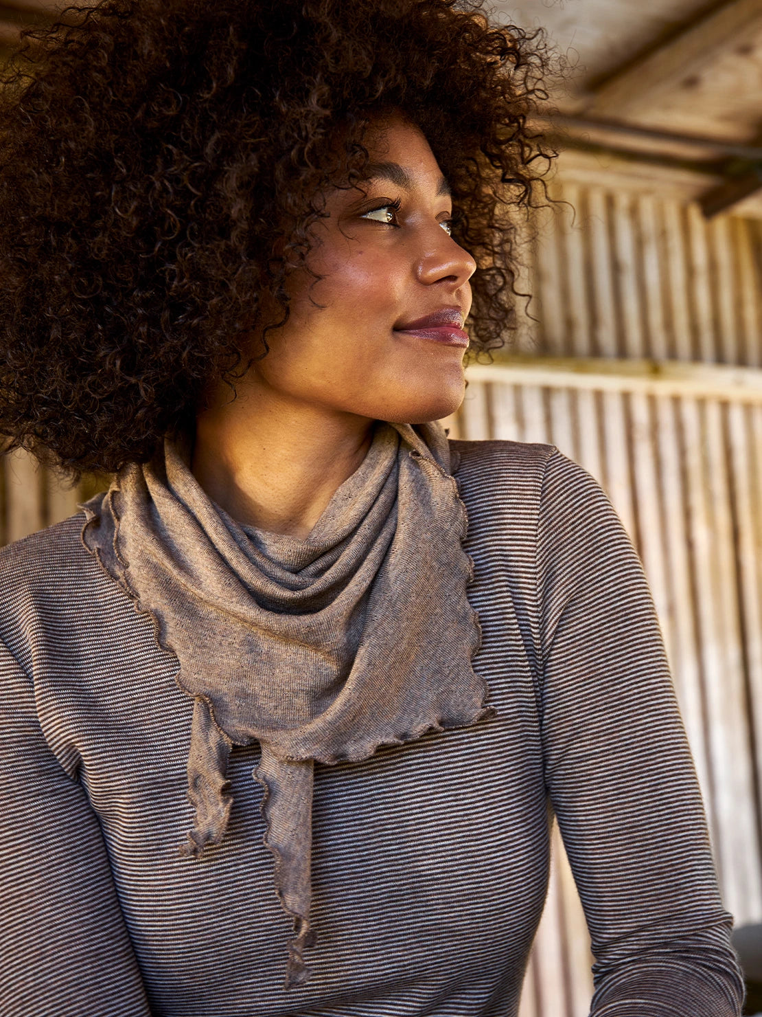 Merino ullartrefill sem er þríhyrningslaga í stærð 90x90x150 cm. Þessi 100% merino ullartrefill er yndislega mjúkur og er með fínni "eyelet" prjónaáferð. Merinoull er þekkt fyrir einstaka mýkt, hlýju og öndun.