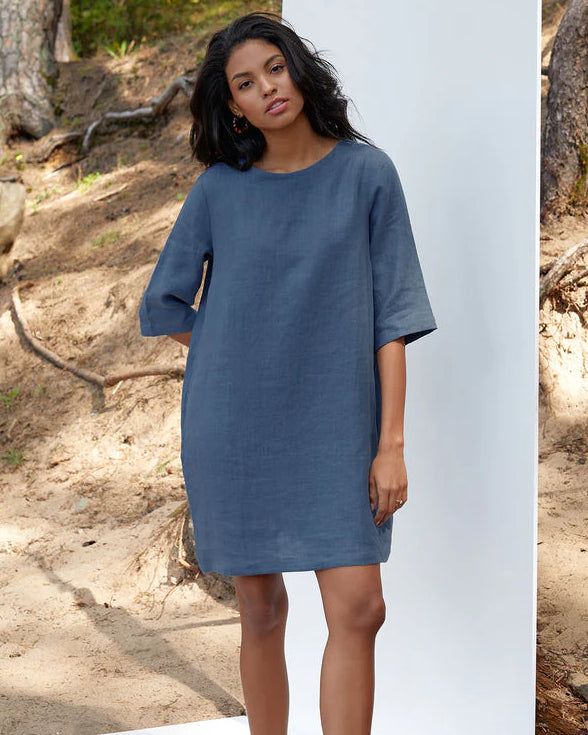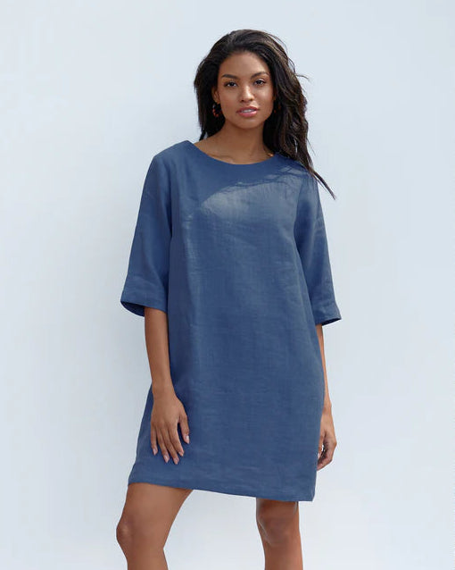 Þessi túnika er algjör klassík! Þægileg sem hægt er að nota sem síðan bol eða stuttan kjól. Það er hægt að klæðast henni á marga vegu, t.d með leggings eða við buxur. Hún er með 3/4 ermum og vösum. Efnið veitir góða öndun.