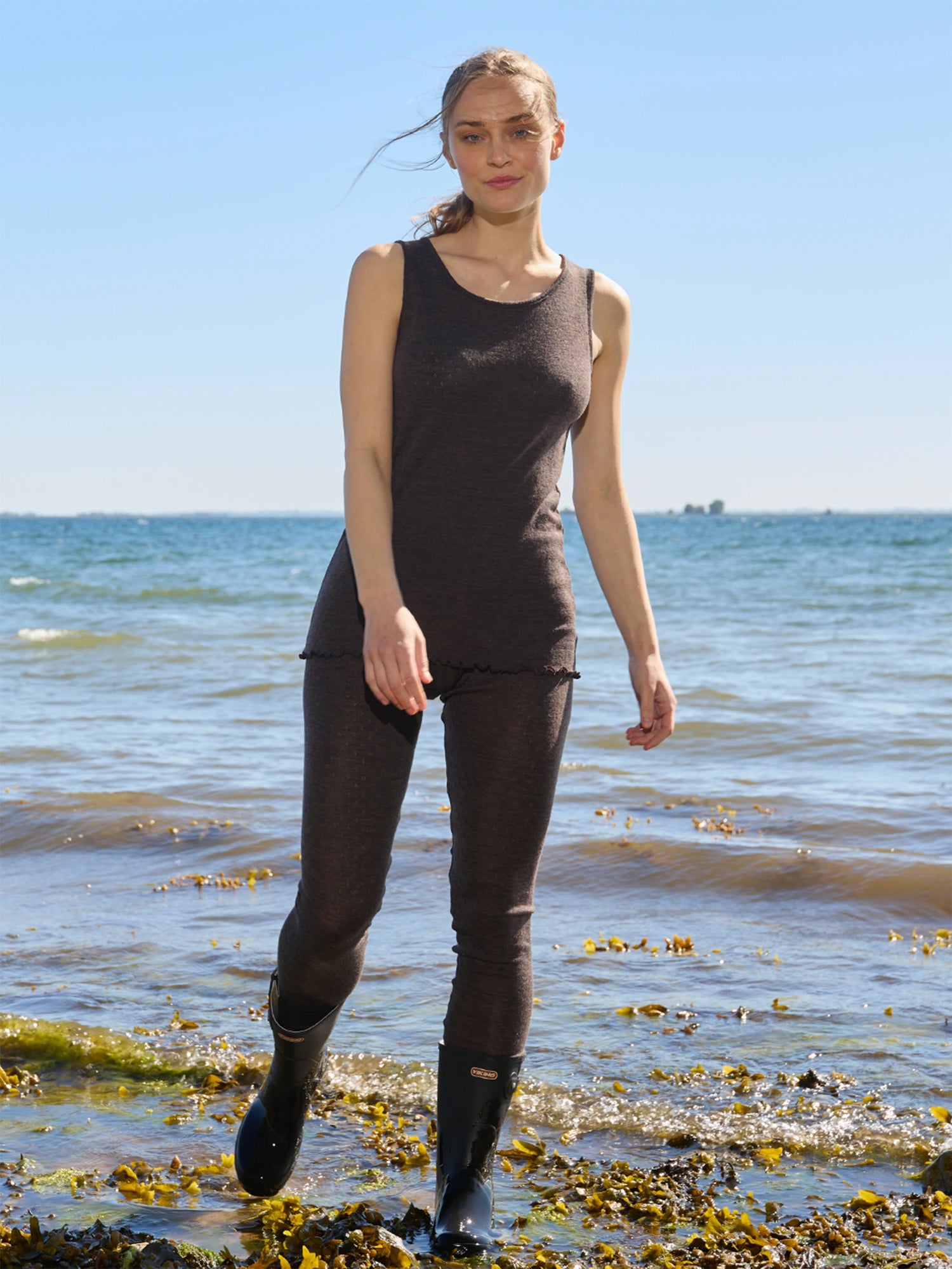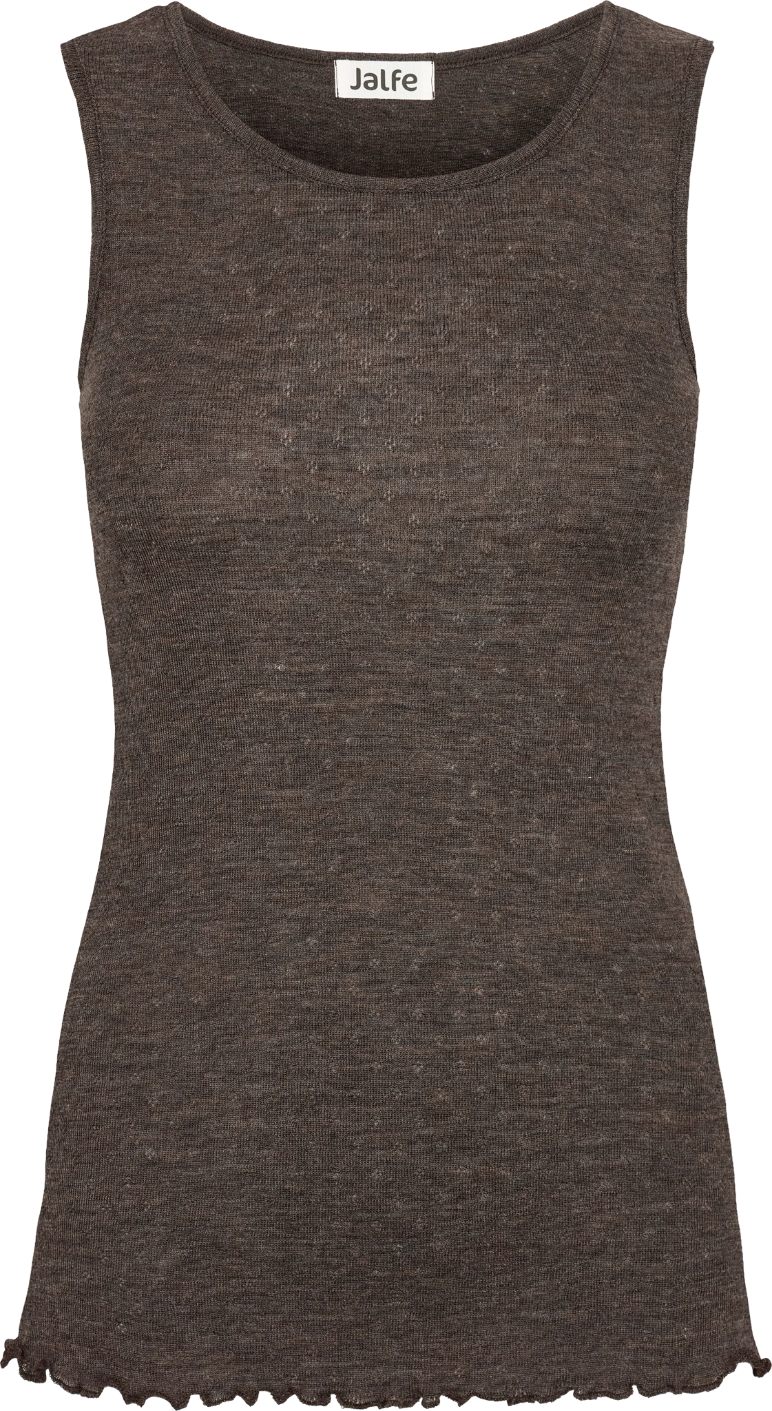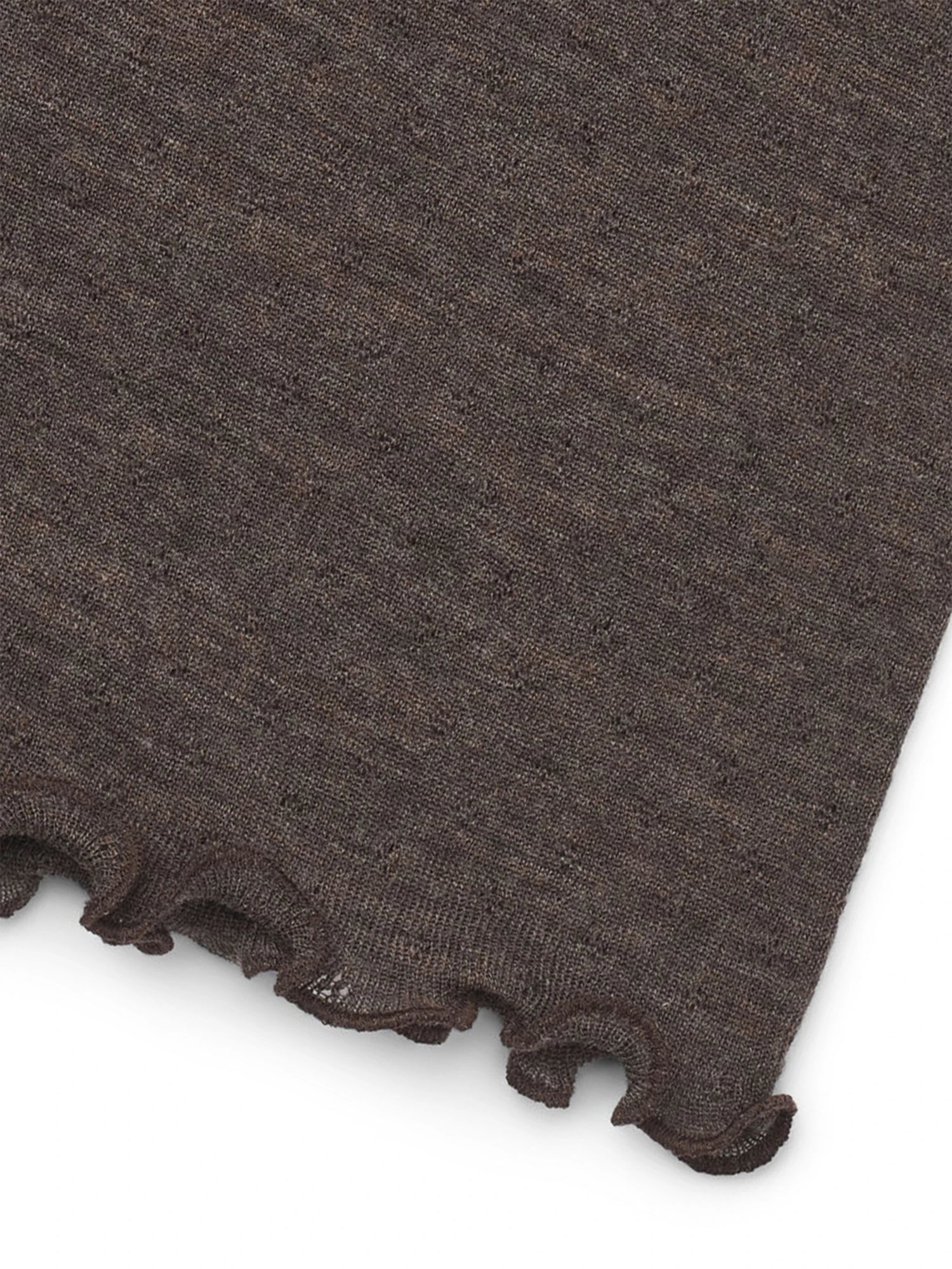 Merino ullarbolur hlýralaus. Þessi 100% merino ullarbolur er yndislega mjúkur og er með fínni "eyelet" prjónaáferð. Hann er teygjanlegur og með smá extra sídd, þannig að hann nær niður fyrir mjaðmir hjá flestum. Merinoull er þekkt fyrir einstaka mýkt, hlýju og öndun.