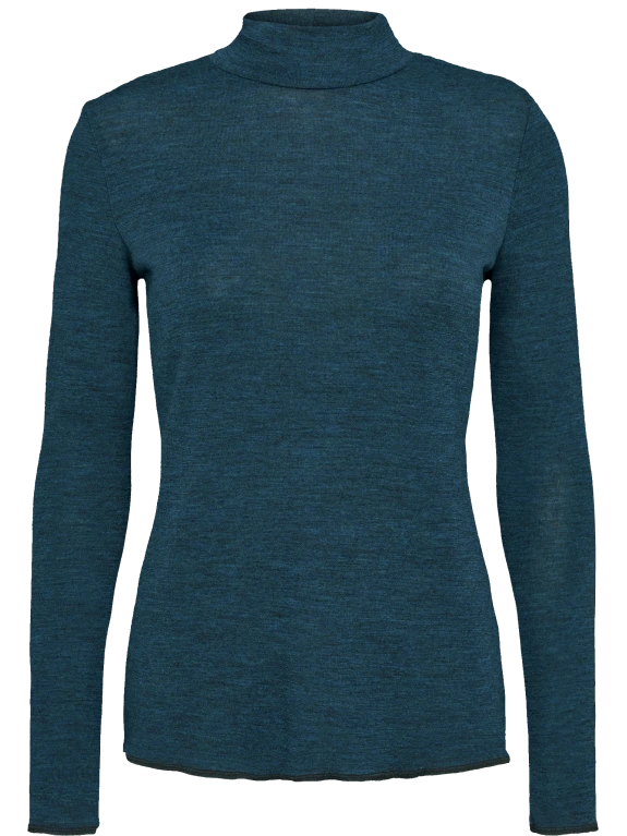 Merino ullarbolur með "turtleneck" hálsmáli. Þessi 100% merino ullarbolur er yndislega mjúkur og er með fínni prjónaáferð. Merinoull er þekkt fyrir einstaka mýkt, hlýju og öndun.