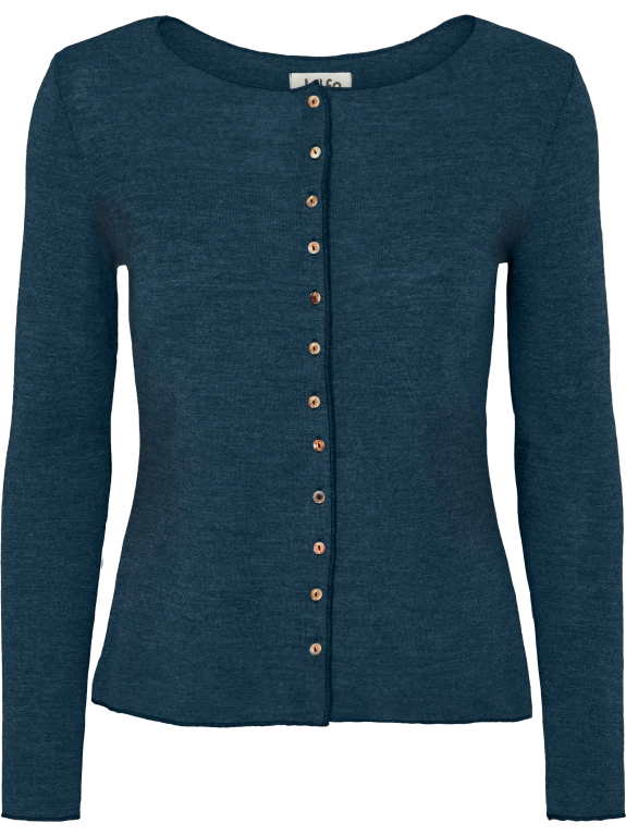 Merino létt ullarpeysa aðsniðin. Hneppt með ekta "mother of pearl" tölum. Þessi 100% merino ullarpeysa er yndislega mjúk og er með fínni prjónaáferð. Merinoull er þekkt fyrir einstaka mýkt, hlýju og öndun.