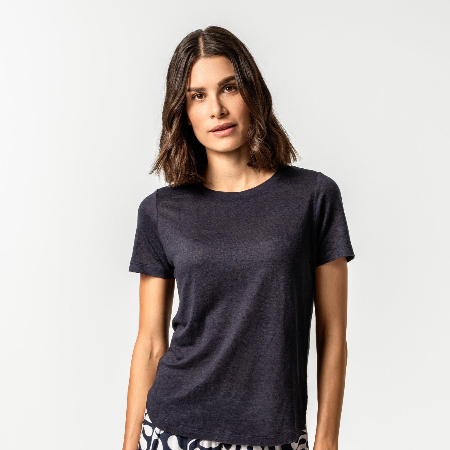 Einfalt náttúrulegt og afslappað. Þessi létti stuttermabolur tryggir óviðjafnanlega vellíðan. Hör heldur húðinni svalari á heitum sumardögum og er mjög þægilegt þökk sé húðvænum vefnaði efnisins.